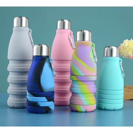 Fitness silicone sports water bottle outdoor folding water cup 550ml large-capacity sports water bottle